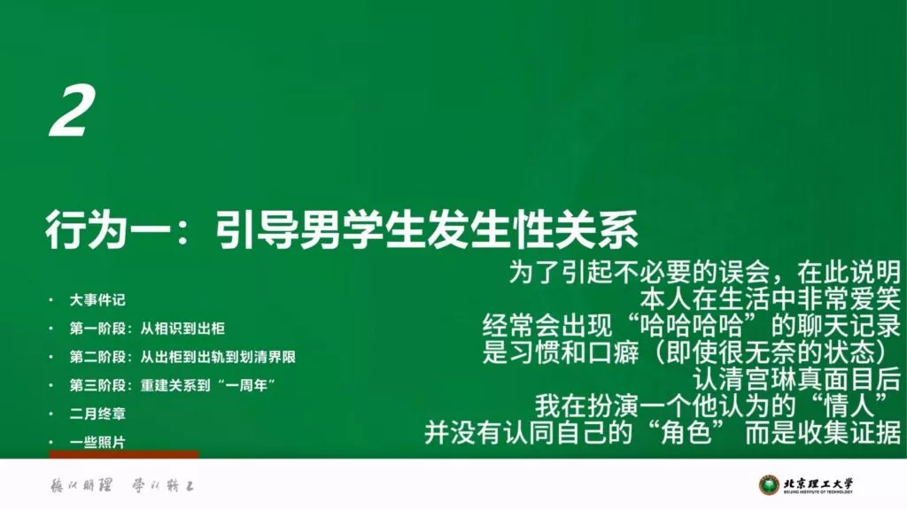 内地高等学府北京理工大学近日曝出震惊事件,男教授宫琳被指控与多名男性学生存在不正当关系。这位教授为了满足自身的私欲,长期对学生施加高压,通过各种手段B迫他们屈从于他的性要求。此事实在令人震惊,一个男教授竟然以这样的方式追求个人私利,更让人愤慨的是,他为达目的不惜采取不择手段的方式。