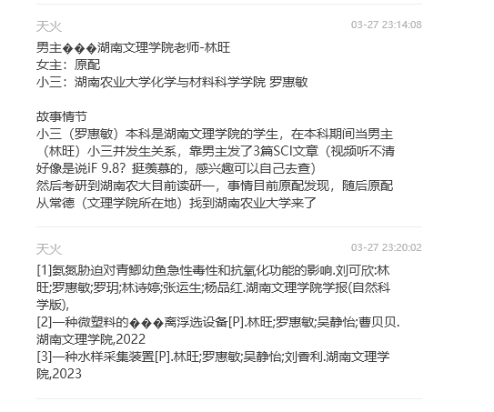 湖南文理学院学术妲己!副教授林旺出轨学生罗慧敏原配正妻学校抓歼