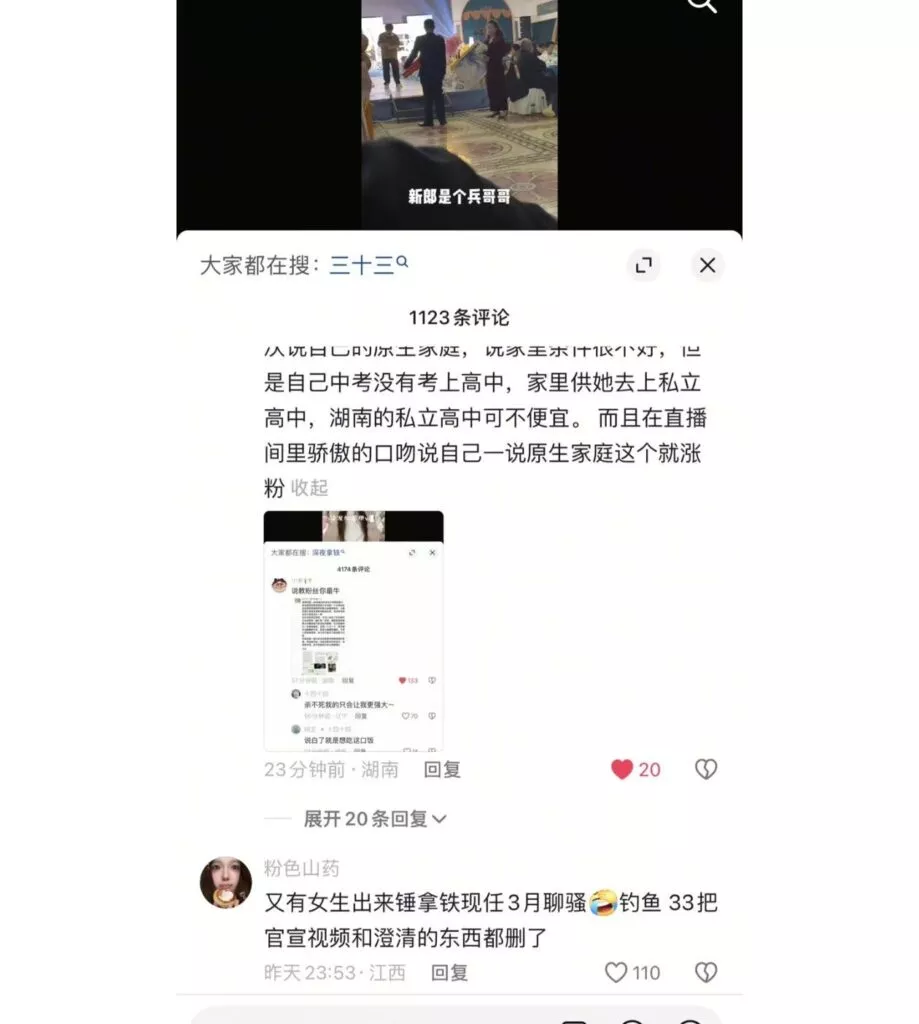 评论区核弹爆破40万粉丝抖音清纯网红三十三人设崩塌顶级海女