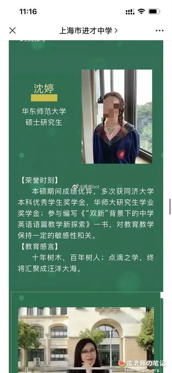 进才中学英语老师沈婷