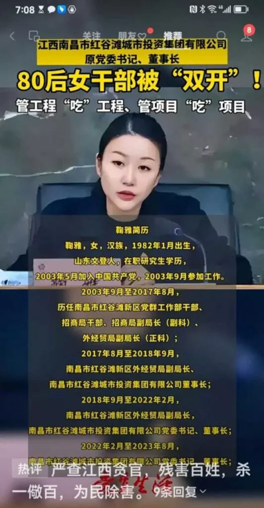 南昌市的鞠雅,作为红谷滩城市投资集团有限公司备受赞誉的优秀党委书记,在21岁时便已跻身高管行列,担任副局长。然而,最近媒体曝出了她背后的争议,指控她在职业生涯中利用个人关系和权色交易,促成了自己的快速晋升。