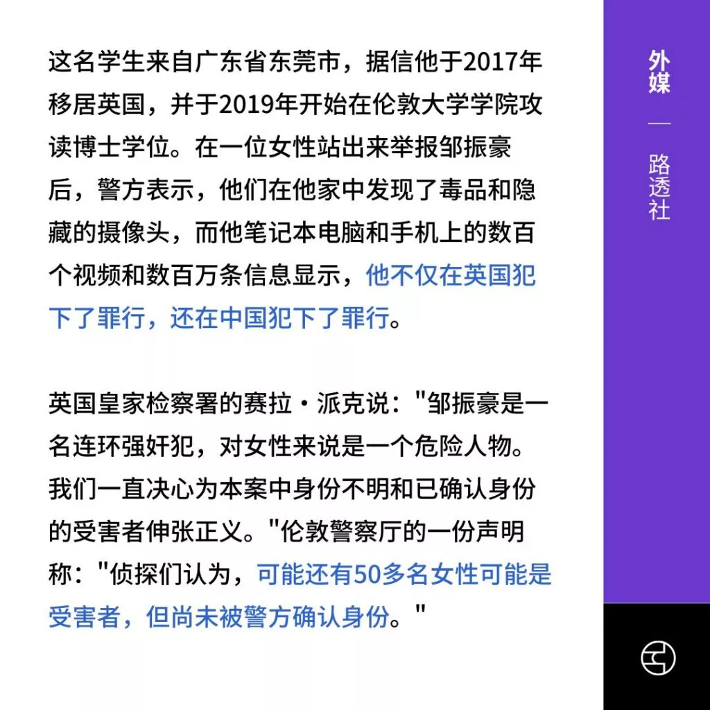 东莞富二代留学生博士邹振豪被指控猥亵多达23名女性举报