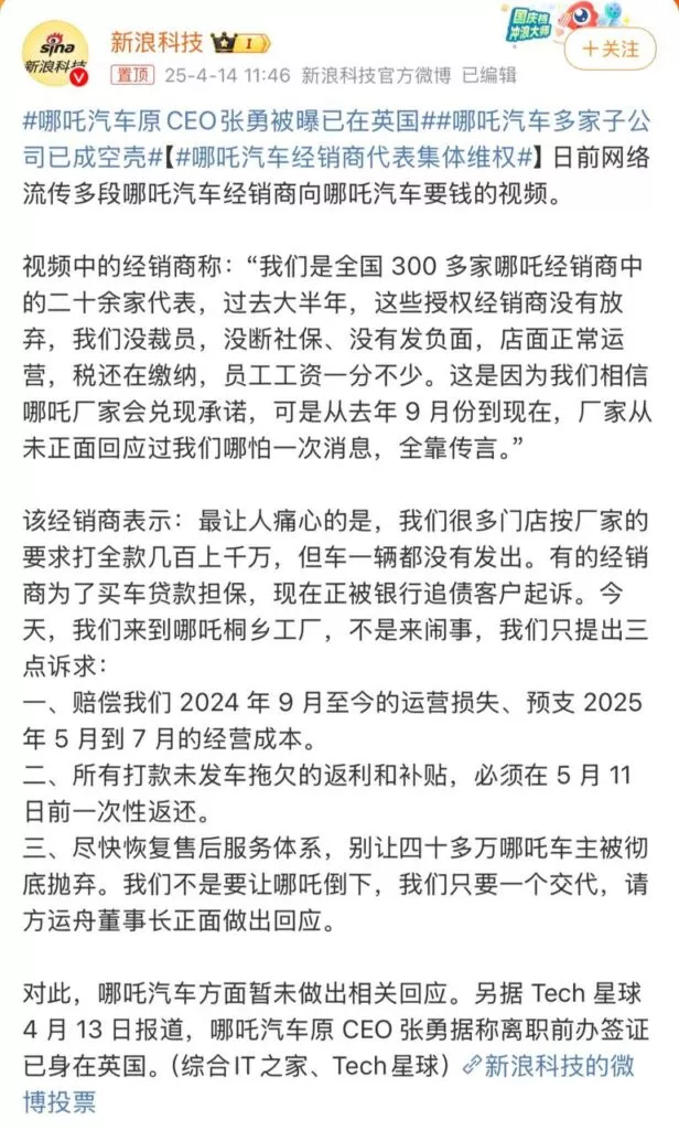 内地新能源汽车的标杆企业哪吒汽车的首席执行官张勇,近期被传出已逃往国外避难。其所属多家子公司也纷纷陷入困境,经营状态不明。日前,一些哪吒汽车的经销商前往其分部探访,却发现现场早已人去楼空,只剩下空荡荡的场地,以及显眼的哪吒汽车大标志,令人唏嘘。