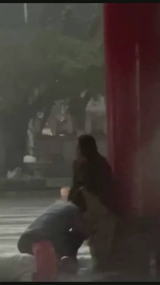 究竟是什么样的爱情竟能让两人忽略了天气的影响,在滂沱大雨的海南三月三广场上,不顾雨水的冷寒,依靠在牌匾下,一对情侣就这么忘我的开始野战doi