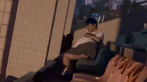 武汉私立院校东湖皇家学院体育场惊现情侣低头吃鸡
